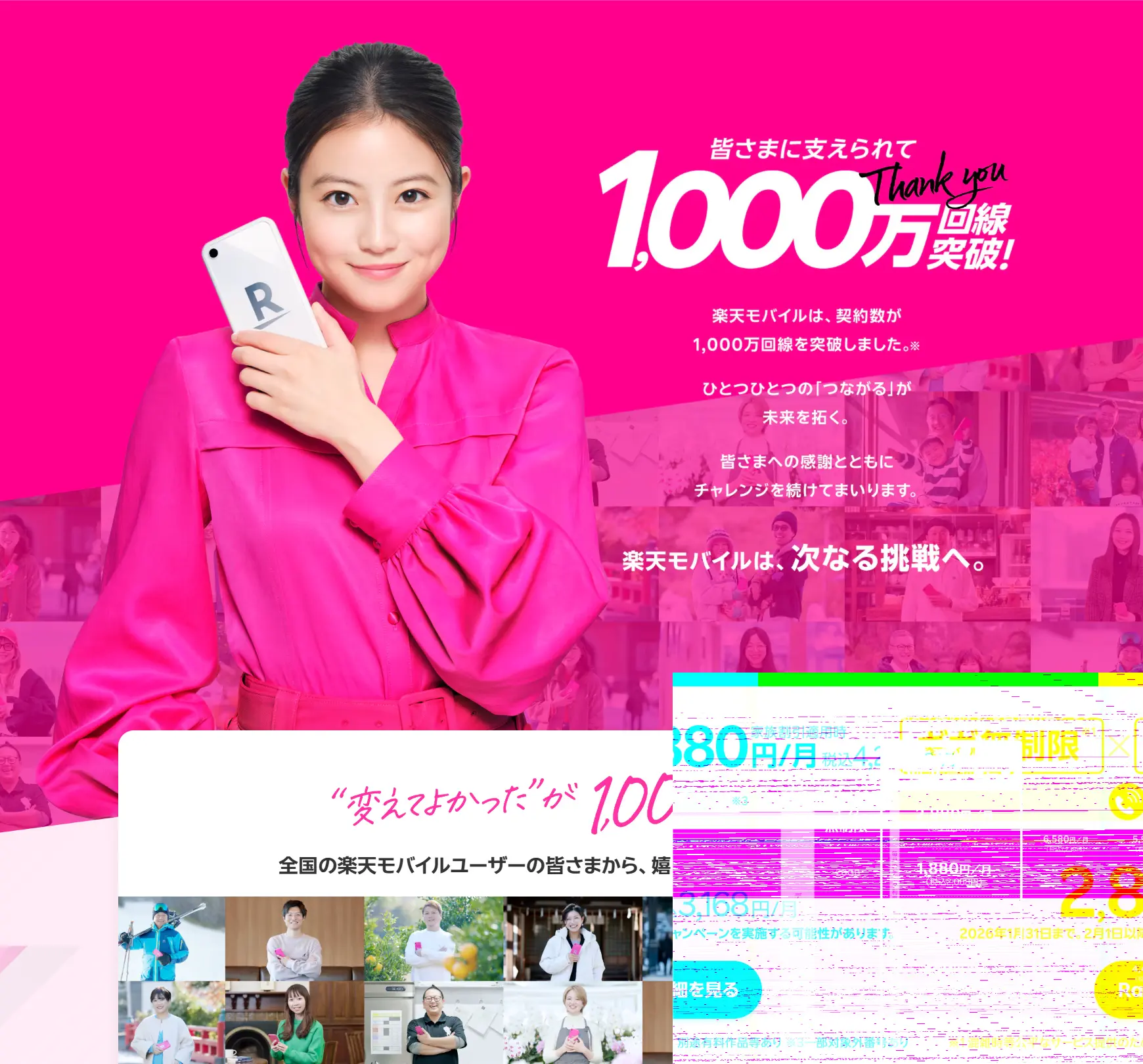 楽天モバイルは2025年12月25日(木)で契約数が1,000万回線を突破したらしいですね!