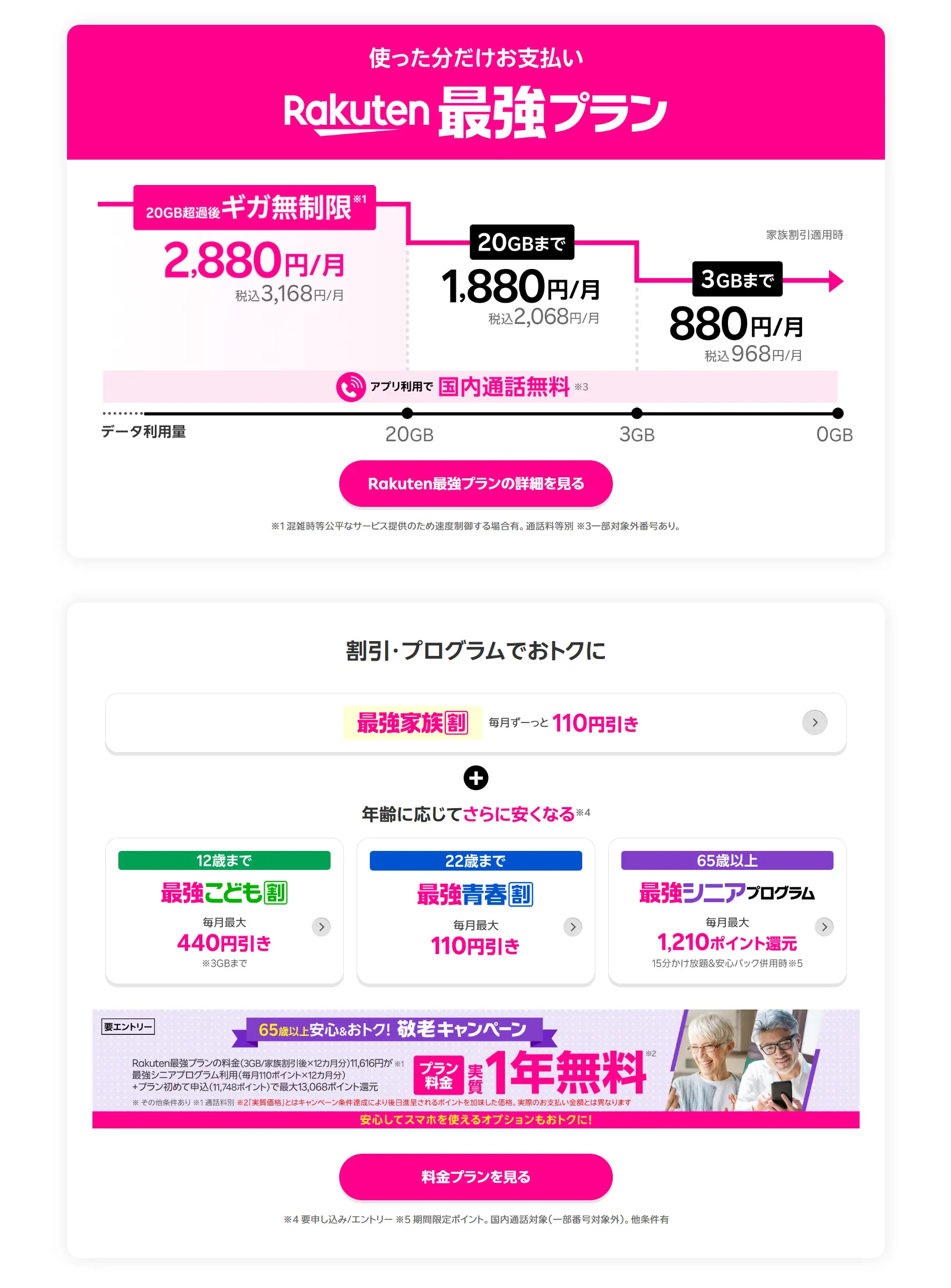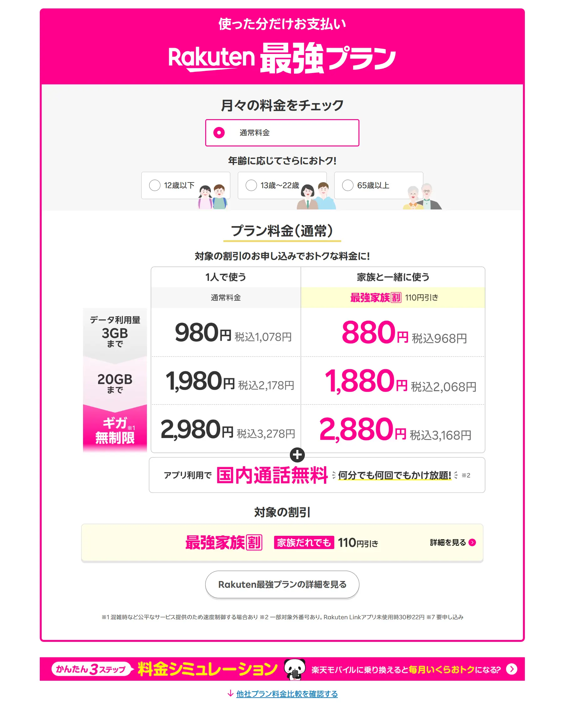 参考情報1: 楽天モバイル(Rakuten最強プラン)はどのくらい安いのか?