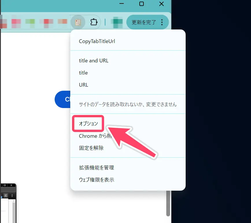 【設定手順1】 CopyTabTitleUrlのオプションを開く